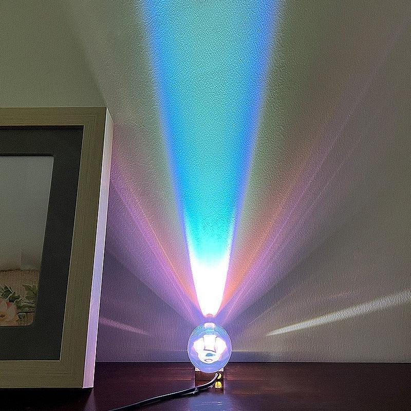 Illuminate your space with the Eye of the Sky Crystal Table Lamp, a captivating LED projector that combines modern design with mesmerizing light effects. Crafted with a crystal-clear shell and featuring a unique "angel eye" lighting pattern, this lamp casts an ethereal glow reminiscent of a celestial phenomenon. Perfect for creating a calming ambiance in bedrooms, living rooms, or meditation spaces, it serves as both a functional light source and a decorative accent. Powered via USB, it offers energy-efficient illumination with high color accuracy.