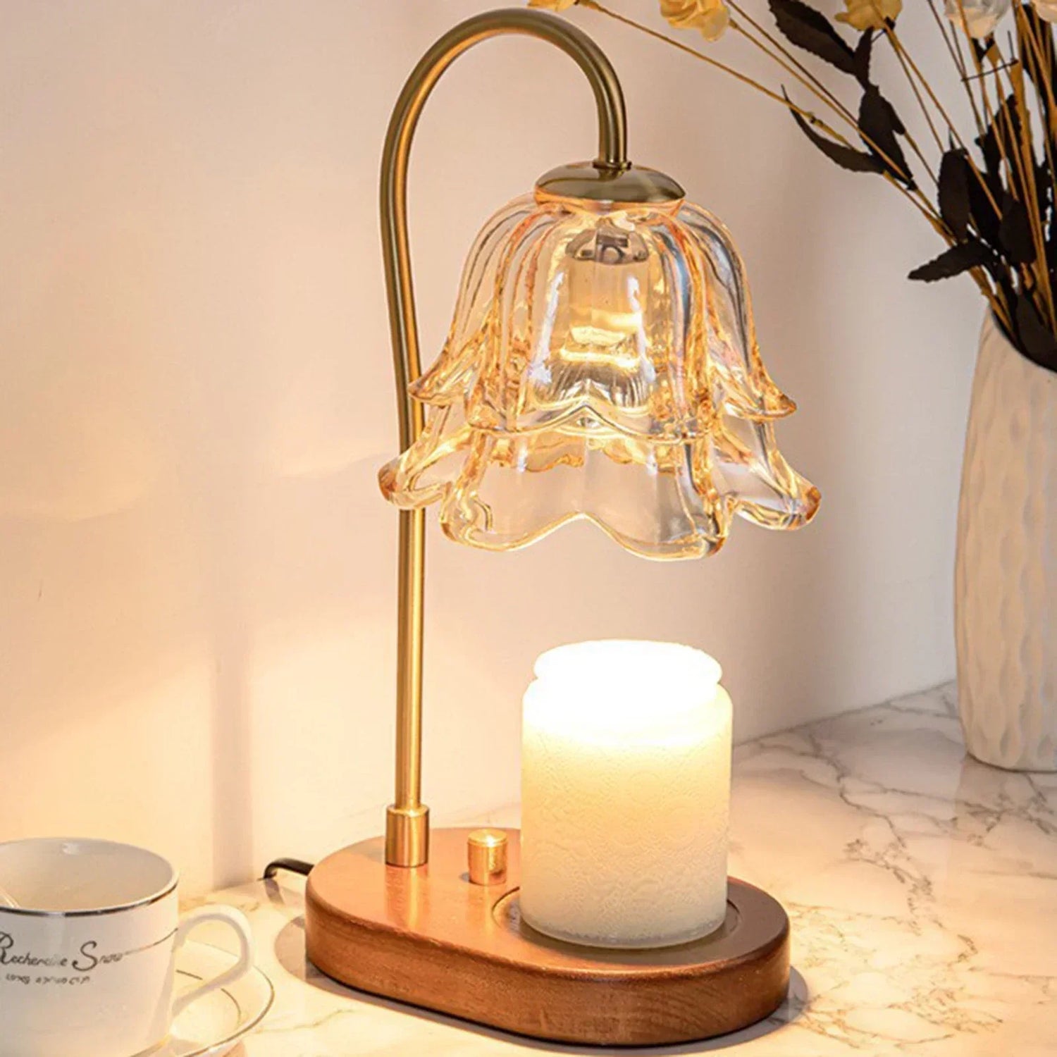 FLUER Flower Candle Warmer Table Lamp – Elegant Floral Ambient Light & Candle Warmer