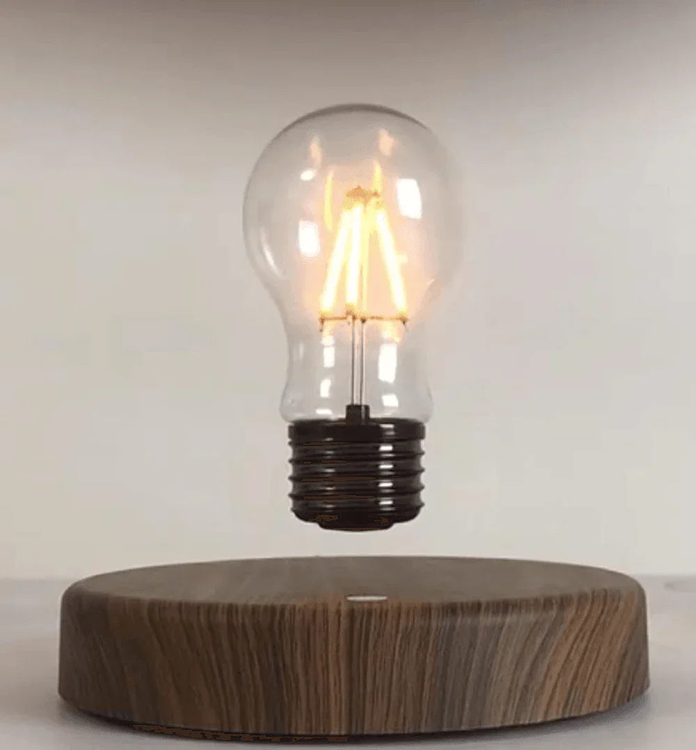 - Magnetic Levitation – Bulb floats and rotates above its base