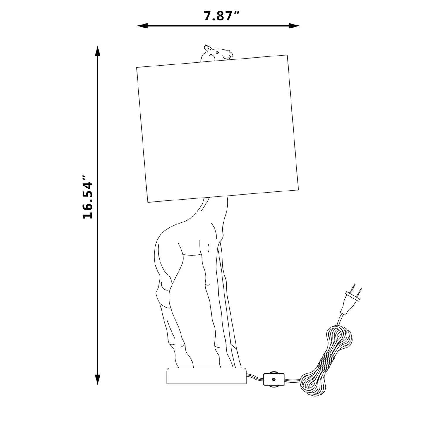 This 17-inch white textured giraffe table lamp with white drum shade is the perfect combination of design and function. The lamp is made of sturdy resin and features a white color. The white drum fabric shade is a great compliment to this lamp. This standard table lamp is designed to provide general lighting to the area.