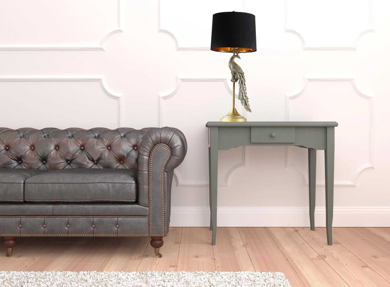 Truly a mix of design and functionality that doesn't compromise on style, this 29" goldpeacock table lamp with black drum shade will be a great addition to your space. A gorgeous gold polyresin base that features a sculptural peacock brings just the right amount of pizzazz to this fabulous lamp. The black drum fabric shade is finishes this piece off nicely and symmetrically This standard table lamp is designed to provide general lighting to the area.
