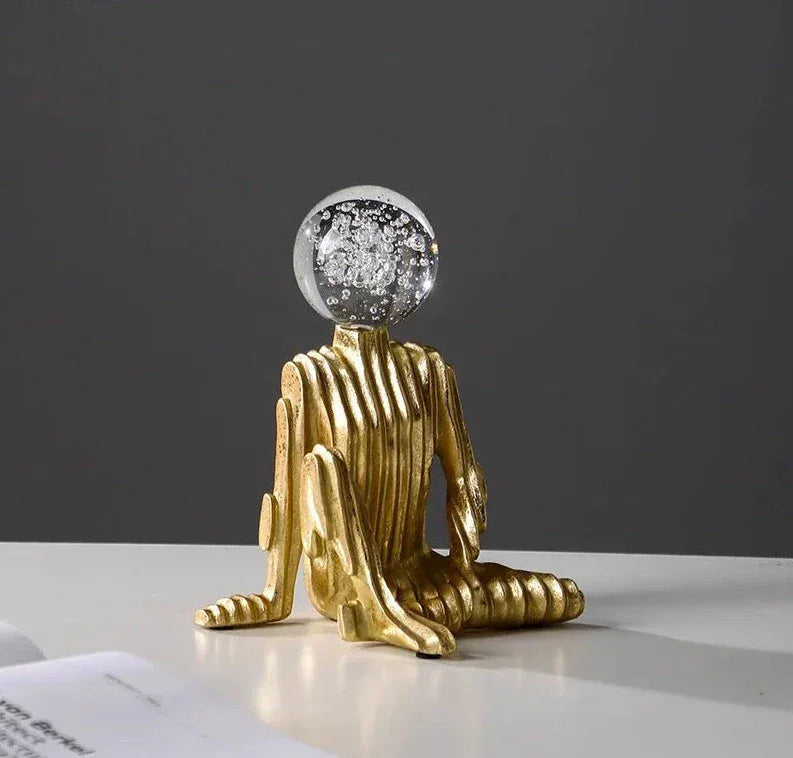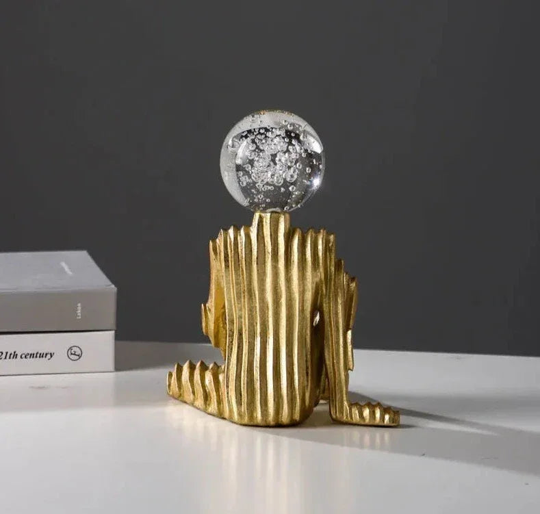 Celly Golden Woman Statue – Playful Resin Accent with a Bubble‑Head Silhouette