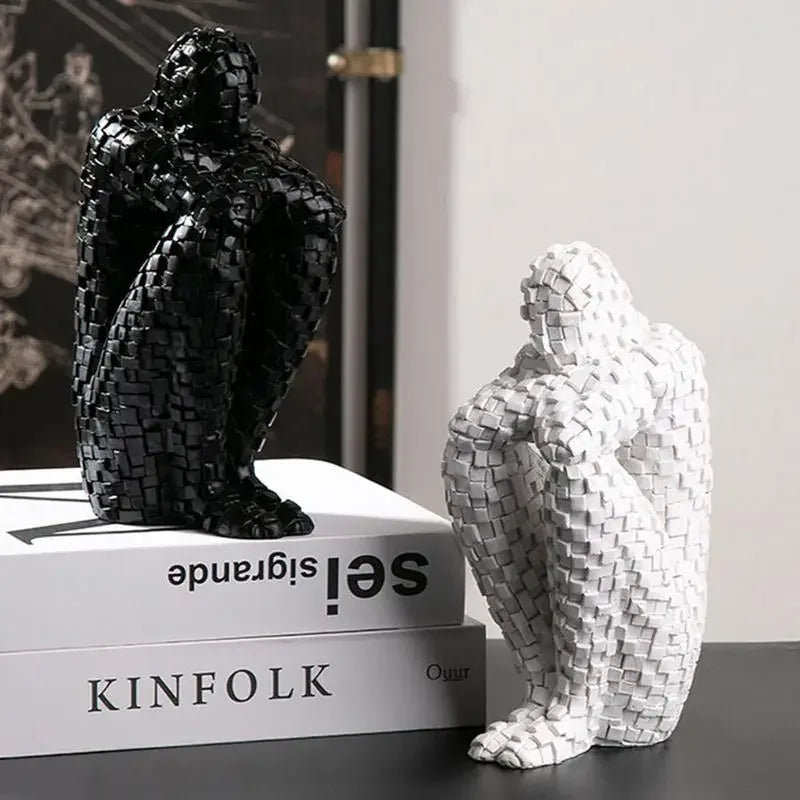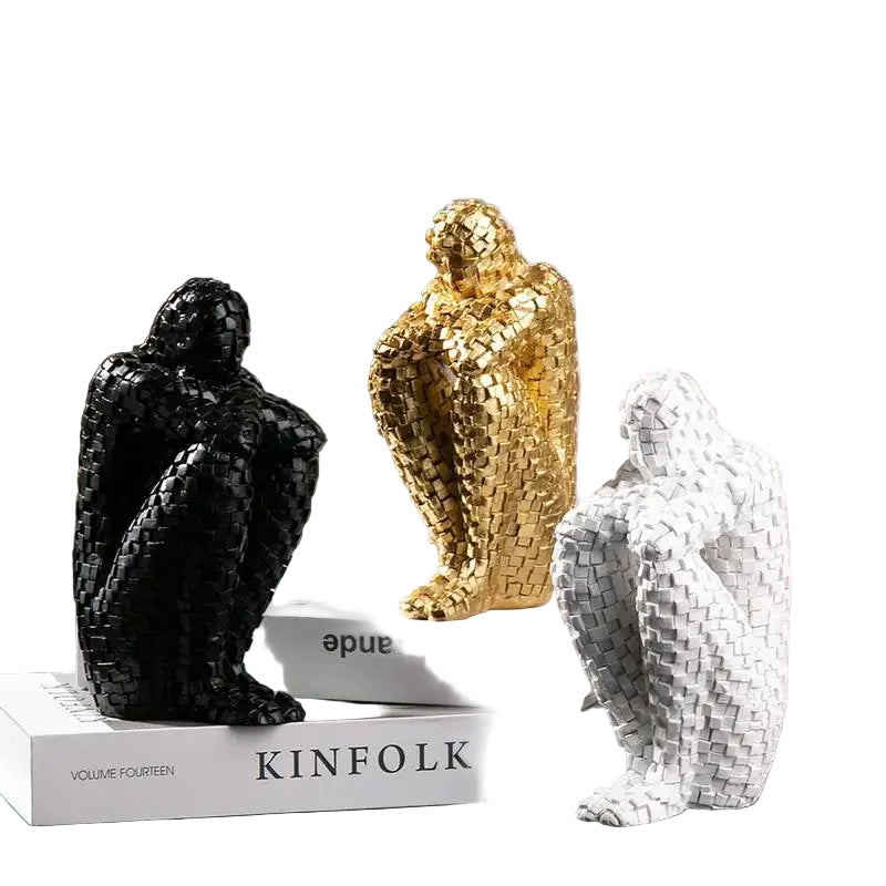 Theo The Thinking Man Statue – Modern Resin Sculpture in Black, White & Gold